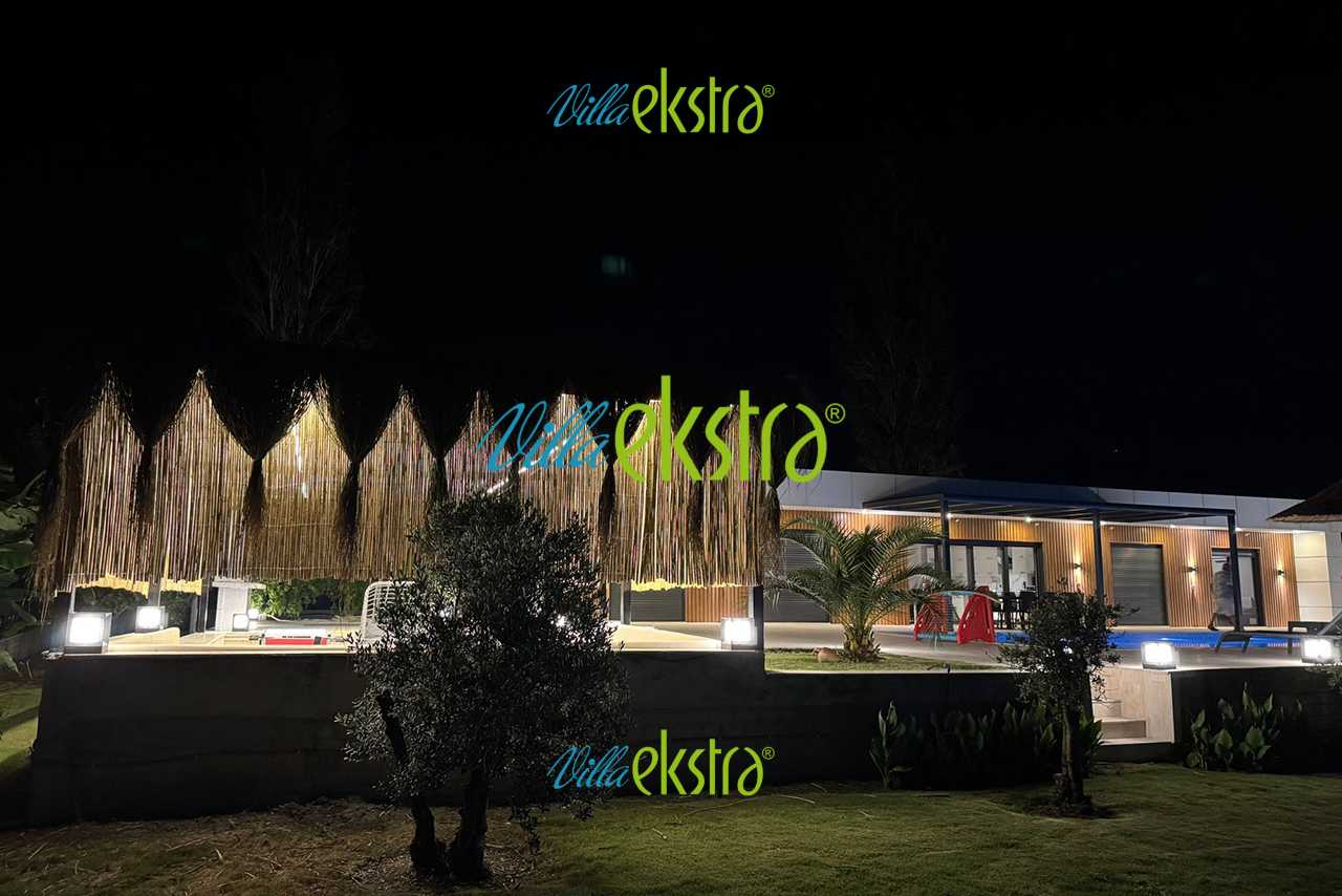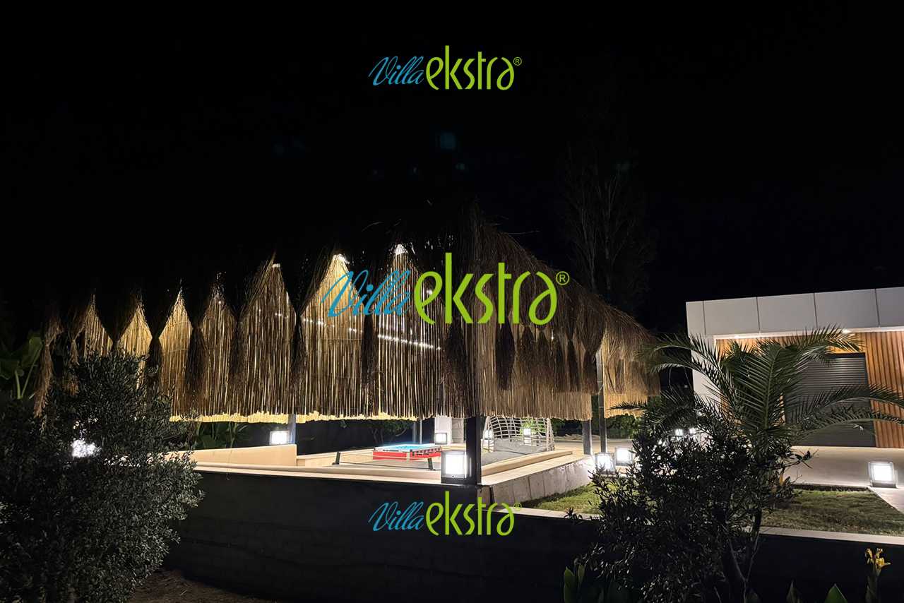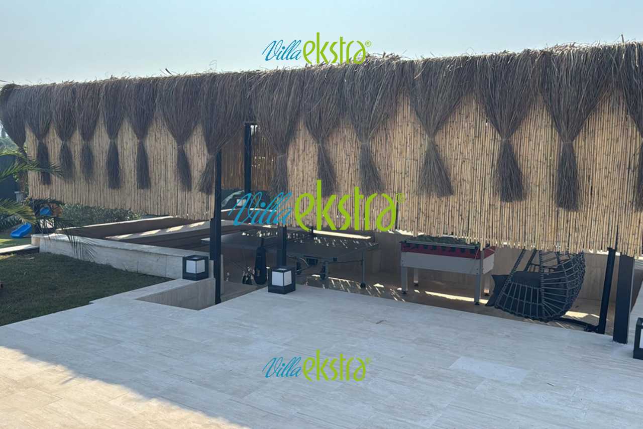 Ferah ve geniş bir oturma alanı, barbekü, 4 adet şezlong, langırt, masa tenisi, damla salıncak yemek masası ve sandalyeler bulunmaktadır.