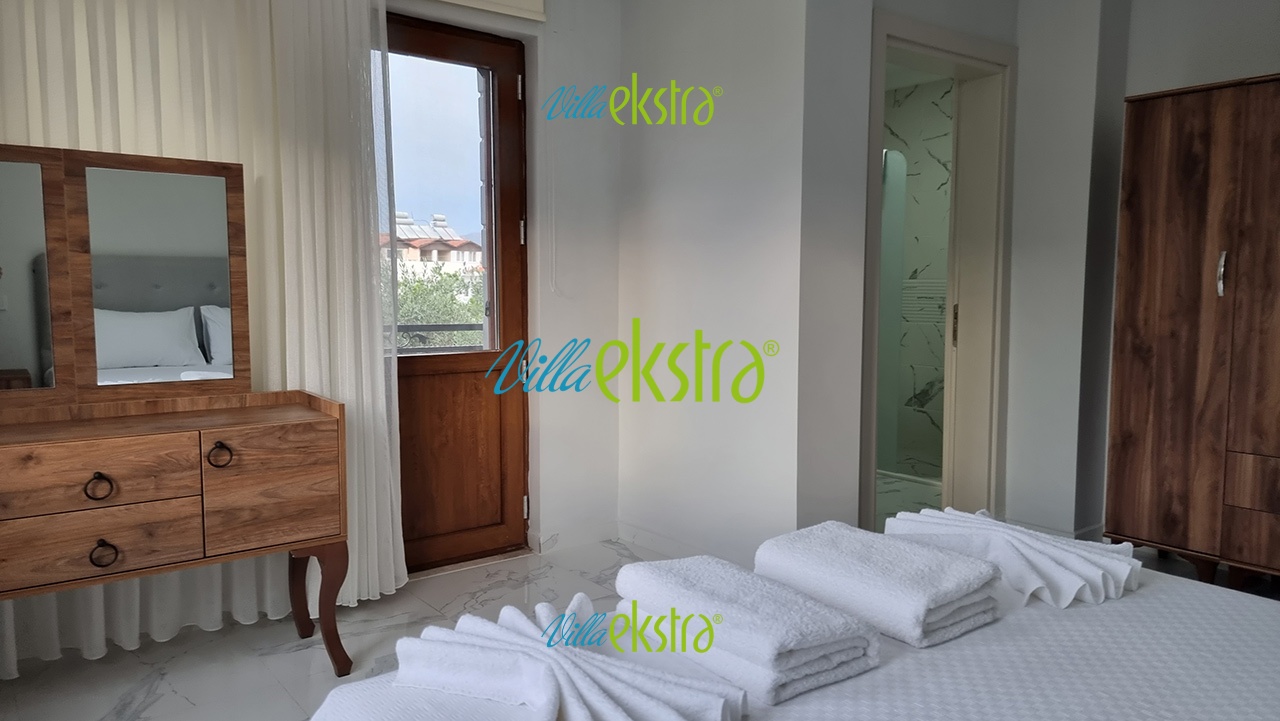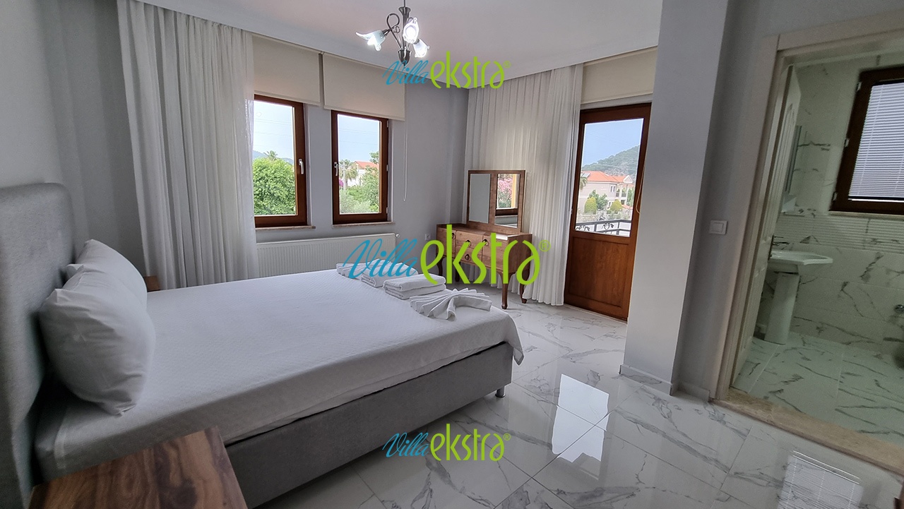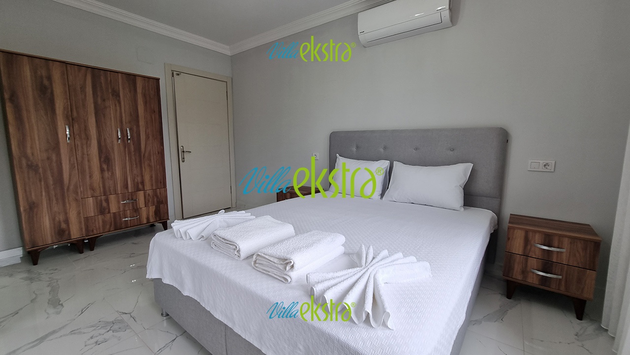 2. Yatak Odası: 1 adet çift kişilik yatak, 1 adet tek kişilik yatak, komodin, elbise dolabı, makyaj masası, klima, banyo&WC bulunmaktadır.