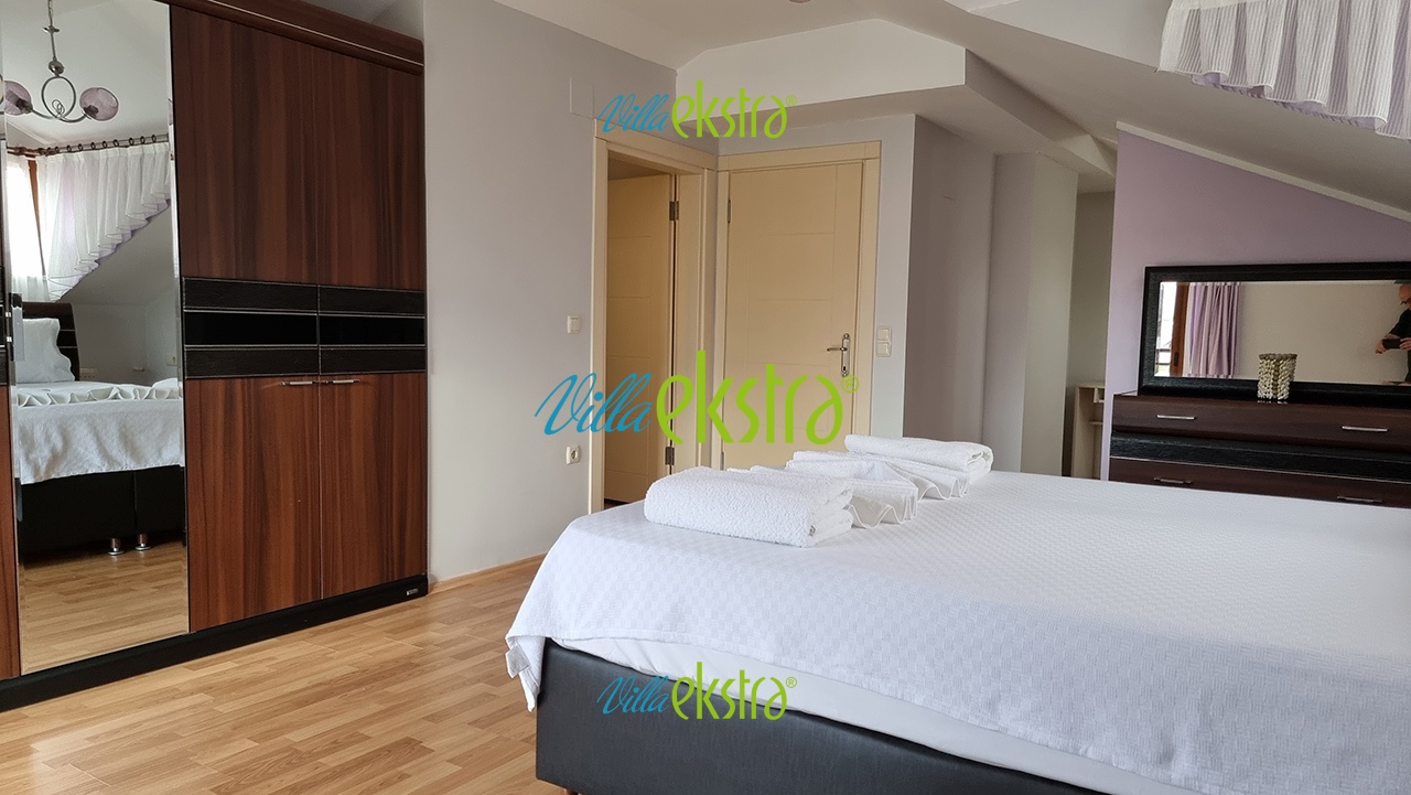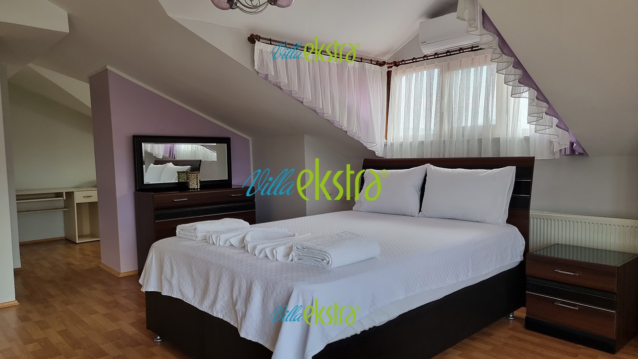 4. Yatak Odası: 1 adet çift kişilik yatak, 2 adet tek kişilik yatak, komodin, elbise dolabı, klima, banyo&WC bulunmaktadır.