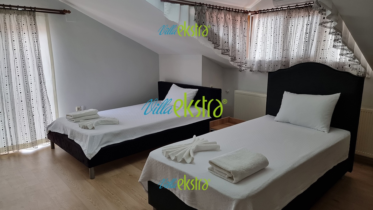 3. Yatak Odası: 2 adet tek kişilik yatak, komodin, elbise dolabı, klima, banyo&WC bulunmaktadır.