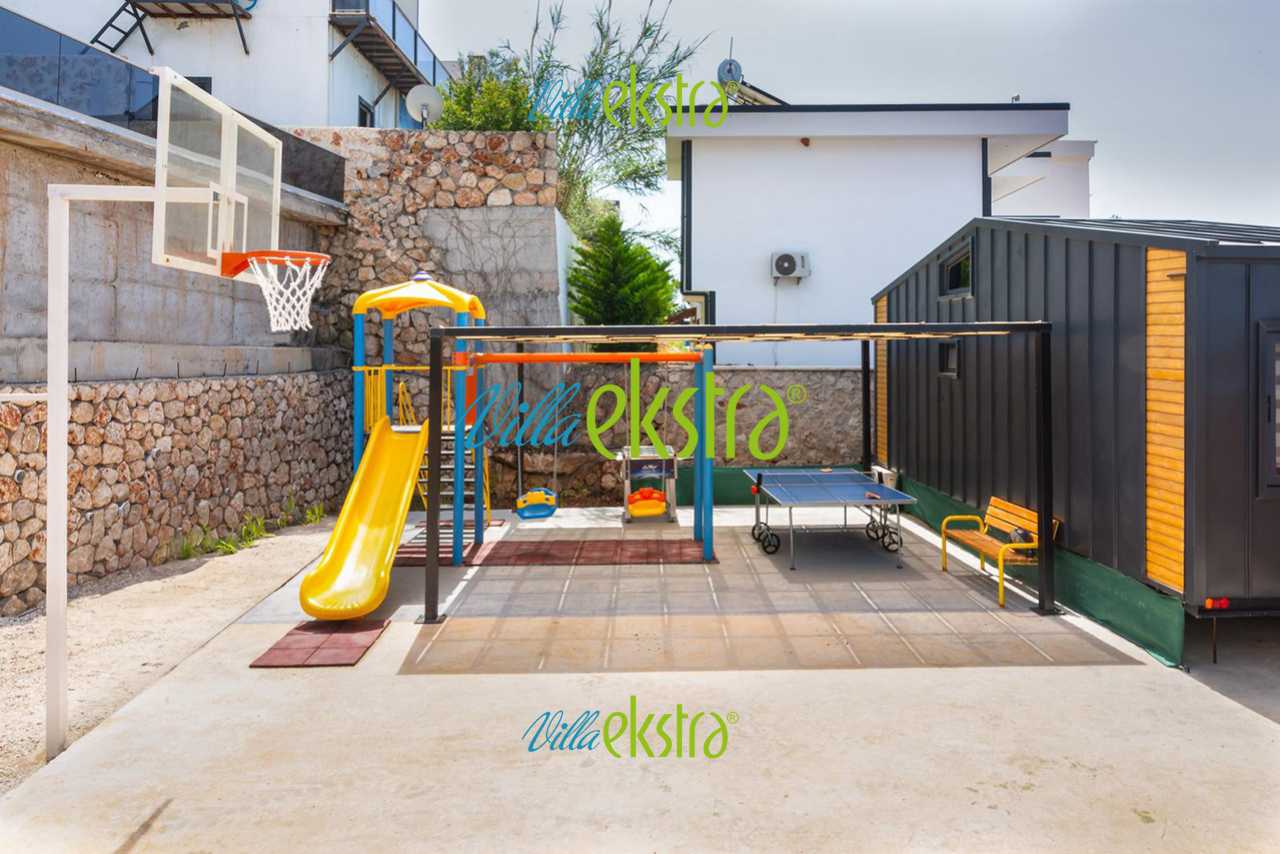 Modern şık, rahat oturma grubu, LCD TV, şömine, yemek masası ve sandalyeler, uydu alıcı, WiFi, klima, WC ve havuz terasına çıkış bulunmaktadır.