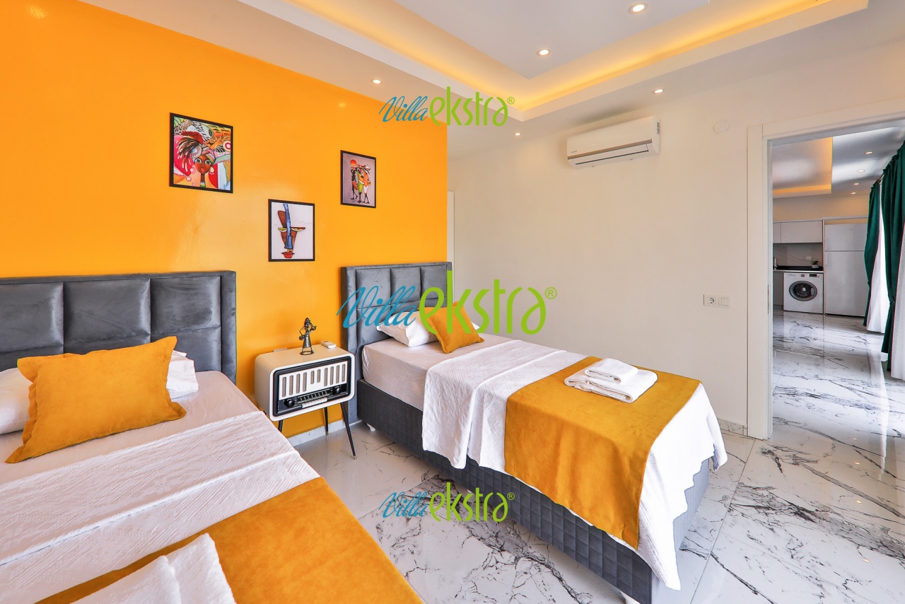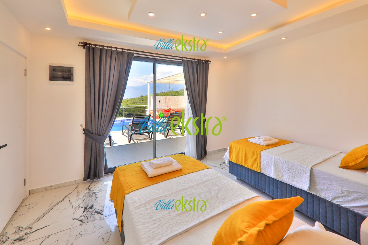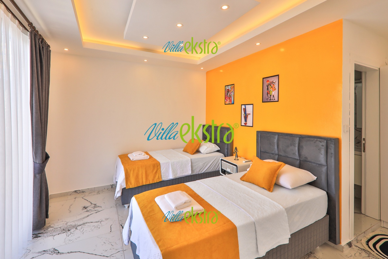 2. Yatak Odası: Suit oda, 2 adet tek kişilik yatak, klima, WC&banyo, havuz terasına doğrudan çıkış bulunmaktadır.