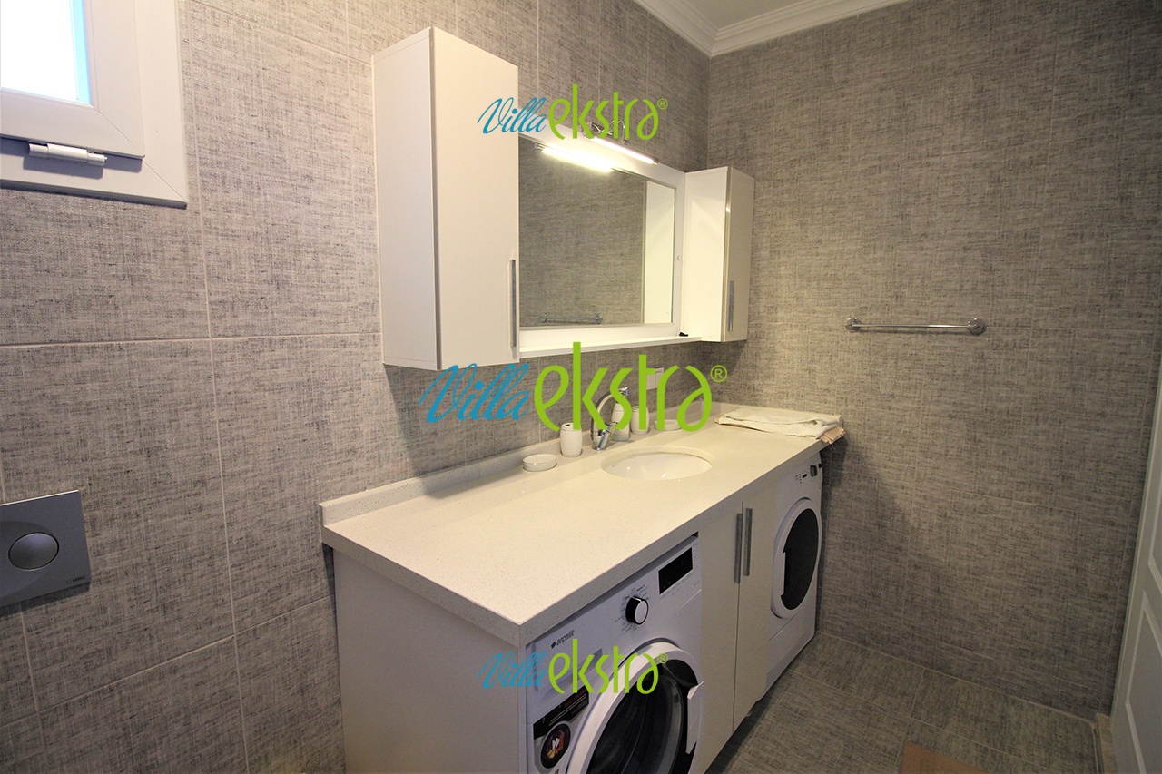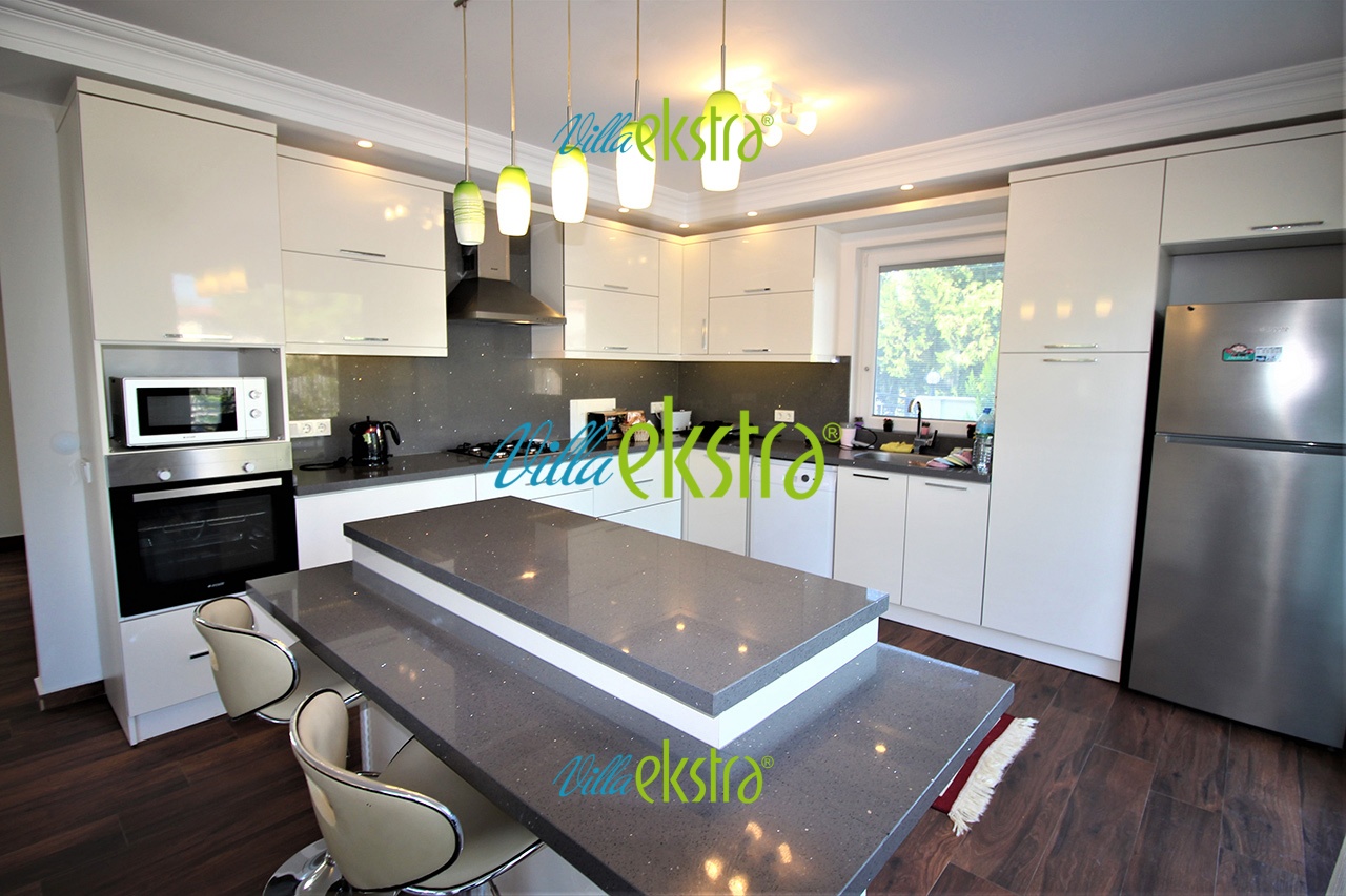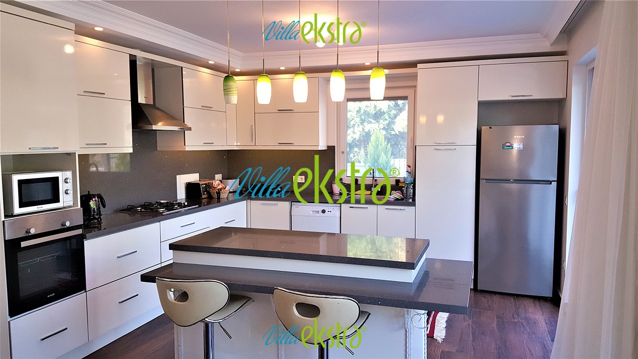 Amerikan mutfak, çamaşır makinası, bulaşık makinası, buzdolabı, ankastre fırın, ankastre 4´lü ocak, davlumbaz, mutfak araç ve gereçleri, yemek masası ve sandalyeleri bulunmaktadır.